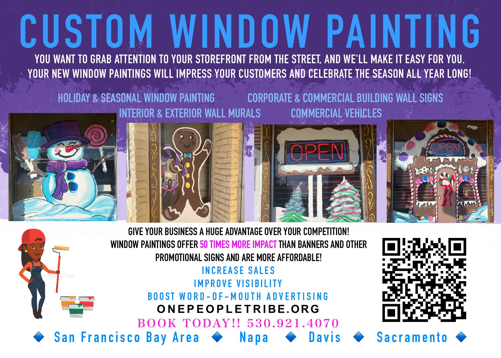 Grab attention to your storefront From The street with custom window paintings!Winter SPECIAL STARTING AT ONLY $150!!